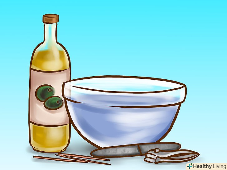 Візьміть зубочистку, пилочку для нігтів, миску, наповнену водою, оливкову олію або лимонний сік, і ножиці для нігтів.налийте в миску теплу воду, можна додати або оливкову олію або лимонний сік. Оливкова олія зволожує, а лимонний сік відбілює нігті. Помістіть Пальці в миску на 5 хвилин, потім промокніть їх насухо. Обріжте нігті, використовуйте зубочистку, щоб очистити бруд під нігтями. Використовуючи пилочку, надайте нігтя овальну форму, працюйте пилкою від краю нігтя до центру. Ви також можете нафарбувати нігті, але якщо ви зняли лак для нігтів, краще почекати день або два, щоб нігті трохи подихали.