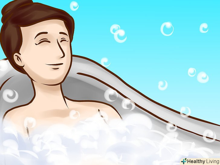 Прийміть ванну з джакузі.додайте ароматичну сіль, морську сіль, ефірні масла, або сухе молоко з медом. Ви можете також запалити свічки і поставити їх біля підніжжя вашої ванни. Розслабтеся протягом 30 хвилин, подумайте про щось хороше, може бути про приємну подію або про улюблену сцену фільму.
