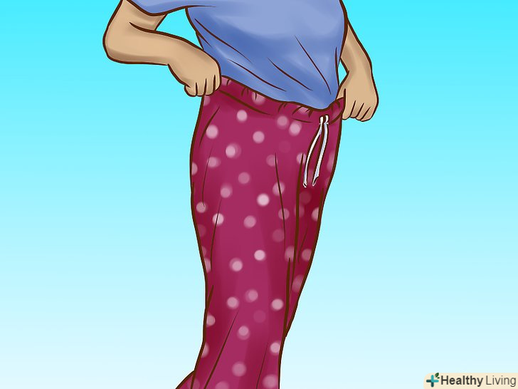 Вийдіть з ванної кімнати і поверніться в свою кімнату, щоб одягнутися. Не надягайте незручний одяг, такий як джинси, вузьку сорочку, спідницю або робочий одяг. У цьому одязі ви не зможете розслабитися.