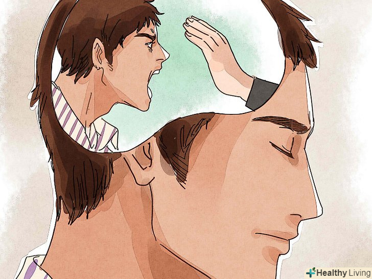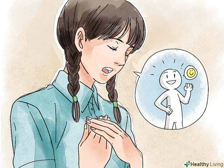 Навчіться позитивному внутрішньому діалогу.Один із способів навчитися більш здоровим способам справлятися зі своїми реакціями на різні ситуації полягає в навику замінювати свої негативні реакції і звички на позитивний внутрішній діалог. На те, щоб вам стало комфортно і природно це робити, піде якийсь час, але це вкрай корисний навик.[10] згідно з дослідженнями, позитивний внутрішній діалог допомагає підвищити рівень концентрованості і зосередженості і подолати почуття тривоги.[11]- Постійно нагадуйте собі про те, що ви заслуговуєте любові і поваги.[12] Зіграйте з собою в гру, завдання якої-знайти якомога більше того, що вам в собі подобається: компетентність, турбота, жива уява і так далі.[13] як тільки вас починають охоплювати негативні думки про себе, нагадуйте собі про всіх тих позитивних якостях, які ви в собі визначили.