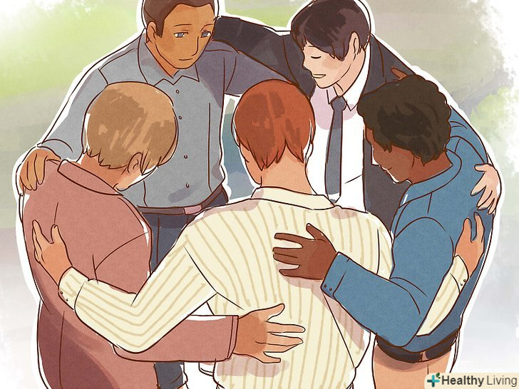 Приєднайтеся до групи підтримки.якщо ви не можете власними силами знайти людей, які підтримають вас, або ж хочете поговорити з тим, хто не буде для вас близьким, спробуйте приєднатися до групи підтримки, яка фокусується на вашій проблемі. Таких груп безліч, вони фокусуються на самих різних проблемах, наприклад, на проблемі вживання психоактивних речовин, домашньому насильстві, втрати близької людини, тривожності і депресії.- Існують онлайн бази даних, які допоможуть вам знайти потрібну для вас групу. Можна також попросити рекомендацій у психолога або психотерапевта, якщо не зможете знайти таку групу самостійно.[12]