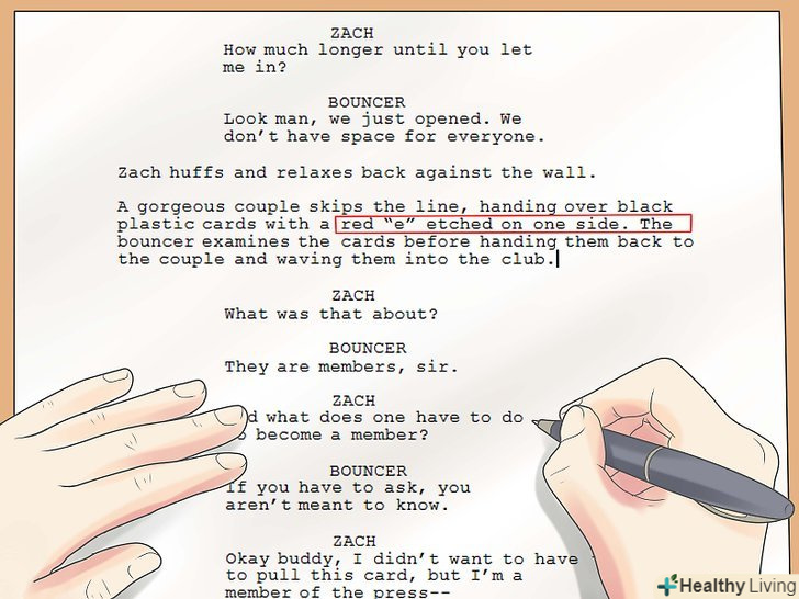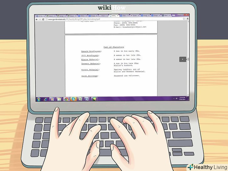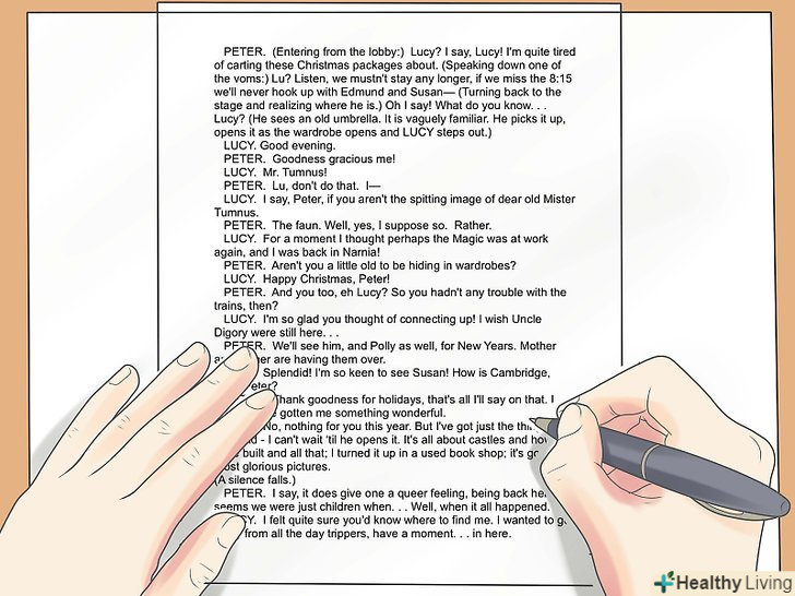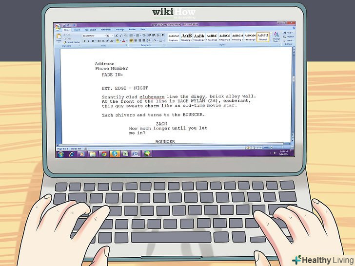 Для кожного виду сценарію — будь це кіно або п'єса-існує свій певний формат.і хоча вони здебільшого однакові, кожен має свої характерні особливості, вивчення яких може зажадати часу.[2] прочитайте кілька сценаріїв обраного Вами жанру, щоб повчитися у професіоналів.