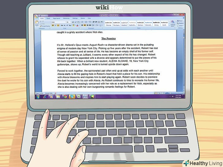 Зробіть начерк історії.перед написанням власне сценарію і діалогів, продумайте основу сюжету і головні події — це допоможе логічно розвивати розповідь і не йти занадто далеко у відступах. Начерк повинен бути написаний від третьої особи.