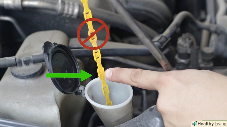 Не переповнюйте бачок склоомивача.Так як рідина склоомивача може розширюватися при нагріванні, важливо не переповнювати бачок. Коли рідина нагрівається через високу температуру двигуна під капотом, що утворюється тиск в переповненому бачку може привести до того, що він трісне і почне підтікати.[5]- Використовуйте спринцівку, щоб відкачати надлишки рідини з бачка, якщо ви налили занадто багато.