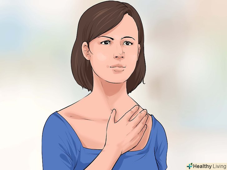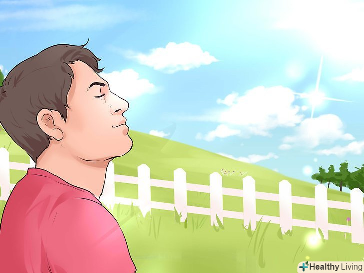 Зробіть паруГлибоких вдихів.це дозволить вам впоратися з прискореним серцебиттям і швидко заспокоїтися. Глибоке дихання допомагає чіткіше думати і позбавляє від м'язової напруги.[1]- Зробіть глибокий вдих носом. Відчуйте, як повітря заповнює живіт.