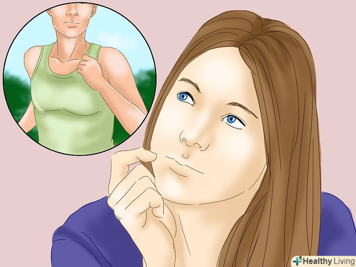 Поступово почніть частіше займатися тим, що викликає у вас тривожність.можливо, ви не робите щось зі страху, що це може призвести до хвороби або смерті. Наприклад, якщо ви дуже боїтеся проблем з серцем, ви можете вирішити уникати фізичних навантажень і сексу. Щоб подолати страх хвороб, важливо поступово почати займатися тим, що вас лякає. Якщо ви зробите щось, що вас лякає, але нічого поганого не трапиться, ви побачите, що боятися нічого.[21]- Якщо робити все поступово, спочатку ризик буде мінімальним, і вам буде не так страшно спробувати. Наприклад, якщо ви боїтеся спорту, тому що вам здається, що фізичні навантаження приведуть до серцевого нападу, спробуйте для початку просто гуляти по вулиці. На наступний день прискорте крок. Потім спробуйте повільно бігати протягом трьох хвилин, потім — п'ять хвилин і так далі.