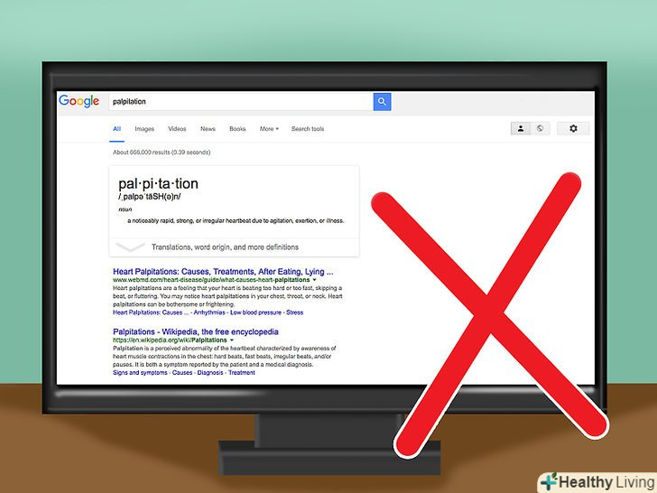 Дізнайтеся, які відчуття є нормальними.вивчіть інформацію про нормальні відчуття в тілі, щоб вони вас не лякали. Буде корисно запитати друзів або родичів про відчуття, які у них іноді виникають.- Наприклад, запитайте, чи бувало у ваших друзів незвичайне серцебиття (наприклад, трепет або відчуття, що серце б'ється не рівномірно). Напевно у багатьох ваших друзів бувало таке, оскільки це поширене явище.[4]
