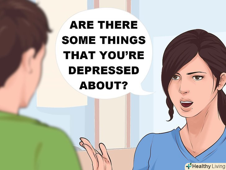 Допоможіть йому визначити його емоційні проблеми.коли у людей виникають неприємні думки і почуття, вони дивляться на порнографію як на спосіб контролю над цими почуттями. Порнографія захоплює його увагу і відсуває почуття тривоги, депресії, нудьги, самотності і стресу на задній план. На жаль це лише тимчасове рішення і воно не створює довгострокових ефективних методів боротьби з цими почуттями.- Допоможіть людині визначити, чи відчуває він депресію. В Інтернеті є спеціальні анкети, які допоможуть з цим.[19] можливо, депресія у нього виникла ще до порнозалежності, або вона виникла як наслідок наявності такої залежності. Запитайте його: "тебе щось засмучує?».