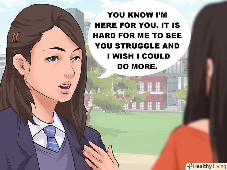 - Підтвердіть, що розмова з психотерапевтом є наступним кроком до отримання необхідної допомоги. Ви були поруч, коли він потребував розмови про його залежність, але тепер прийшов час поговорити з професіоналом. Ви можете сказати йому:»Я все одно буду поруч, і ти зможеш поговорити з психотерапевтом, який точно зможе допомогти тобі краще, ніж я".