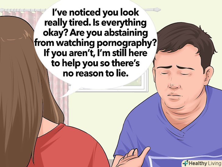 - Визначте зміни та обговоріть їх. Якщо ви помітили зміни в його поведінки, через які ви вважаєте, що він міг зірватися, тоді спокійно висловіть йому про це. Скажіть наступне: "Я помітив, що останнім часом ти виглядаєш втомленим. У тебе все в порядке? Ти утримуєшся від перегляду порнографії? Якщо ні, знай, що я завжди поруч, так що тобі не треба брехати».