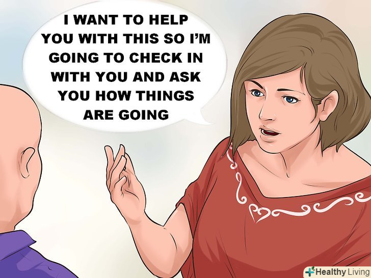 Продовжуйте підтримувати людину.Будьте поруч (пишіть йому, телефонуйте, зустрічайтеся). При взаємодії з ним ви повинні залишатися позитивним, але будьте прямі, чесні і серйозні, коли це необхідно. Він повинен знати, що на шляху до відновлення є люди, які його підтримують, і що ви в їх числі.- Будьте ласкаві і чуйні до його проблем. Робіть з іншими так, як хочете, щоб надходили до вас.