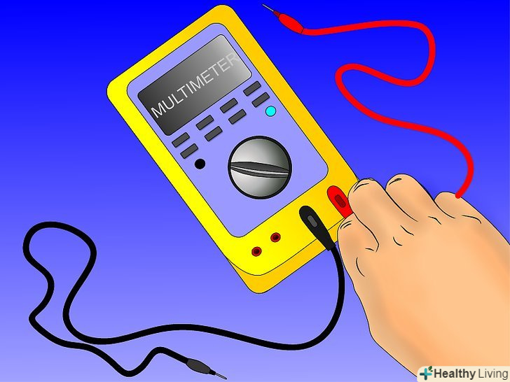 Підключіть чорний провід до негативного входу мультиметра, а червоний провід до 10А або 20A на мультиметрі.прилад повинен побачити принаймні 2 або 3 ампера для цього виміру, щоб коректно працювати. Підключення червоного проводу до входу мА мультиметра не підходить і може пошкодити прилад.