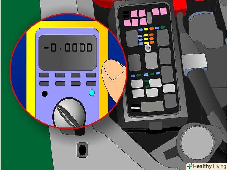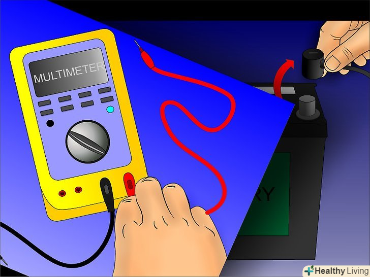 Підключіть мультиметр (встановіть ручку мультиметра для вимірювання струму згідно інструкції) між негативним щупом і негативним полюсом батареї.зачекайте від декількох секунд до декількох хвилин, щоб перевести машину в сплячий режим - тобто, коли ви підключаєте амперметр, автомобільні комп'ютерні системи "будяться". Через деякий час вони знову будуть повертатися в "сон".