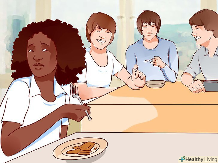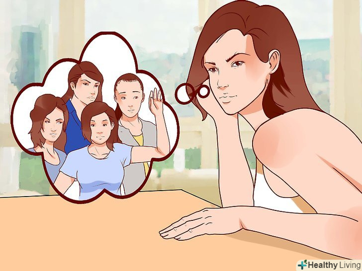 Не зациклюйтеся на собі.взаємодійте з оточенням, щоб не зациклюватися на собі. Спостерігайте за людьми і обстановкою. НамагайтесяСлухати інших і не піддавайтеся поганим думкам.[14]- Якщо ви помітили, що зациклені на своїх думках або на тому, що про вас можуть подумати люди, то перенесіть увагу на щось інше.