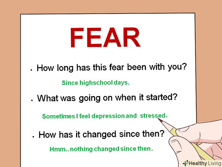 - Спробуйте вибудувати ієрархію ситуацій, оцінюючи їх за ступенем страху для вас від 0 до 100, в залежності від того, наскільки сильний страх ви відчуваєте.[7] наприклад, ви можете оцінити годину, проведений вдома на самоті в 100 балів, але похід на самоті в кіно – в 70. Таким чином, ви зможете поступово підібратися і до сильних страхів, коли почуття від менш страхітливих ситуацій будуть стихати.