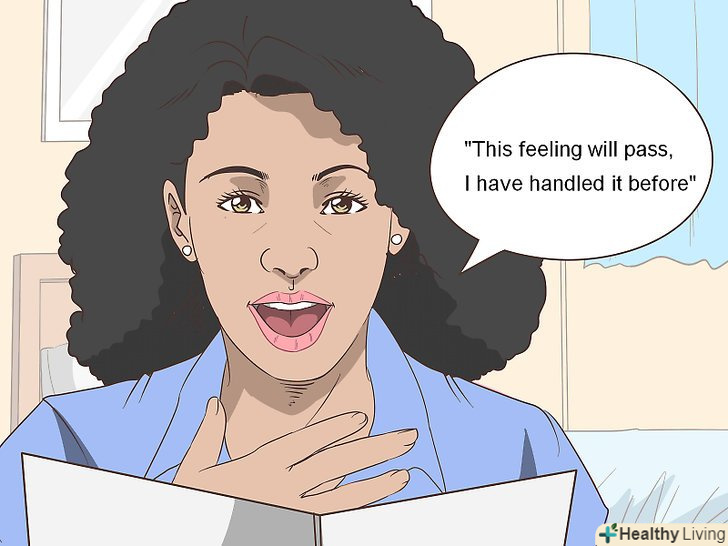 Знайдіть опору, яка допоможе вам заспокоїтися. [11] ви піддаєте себе стресу, коли відкриваєтеся страху, тому вам потрібно придумати надійний спосіб, як відволіктися. Спробуйте продекламувати кілька рядків вірша про себе, вирішити парочку прикладів в розумі або прошепотіти підбадьорюючі фрази самому собі, наприклад, "це відчуття пройде, я вже справлявся з ним раніше".- Пам'ятайте, чим рідше ви використовуєте свою опору, тим інтенсивнішим буде процес занурення в свій страх.