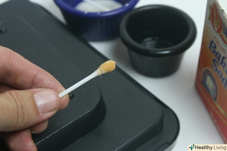 Заготовте засіб для чищення.змішайте 2-3 столові ложки харчової соди з приблизно 1 ложкою води. Збийте суміш до стану пасти.