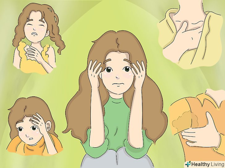 Зрозумійте симптоми страху.Страхи часто проявляються у вигляді фобій, які можуть включати в себе фобії конкретних ситуацій (наприклад, страх перед публічними виступами), страх перед якимись тваринами (перед зміями або павуками), страх крові, уколів і так далі. Коли ви відчуваєте страх, виникають різні фізіологічні, інтелектуальні та емоційні реакції, серед яких можуть бути:[2]- Посилене серцебиття;