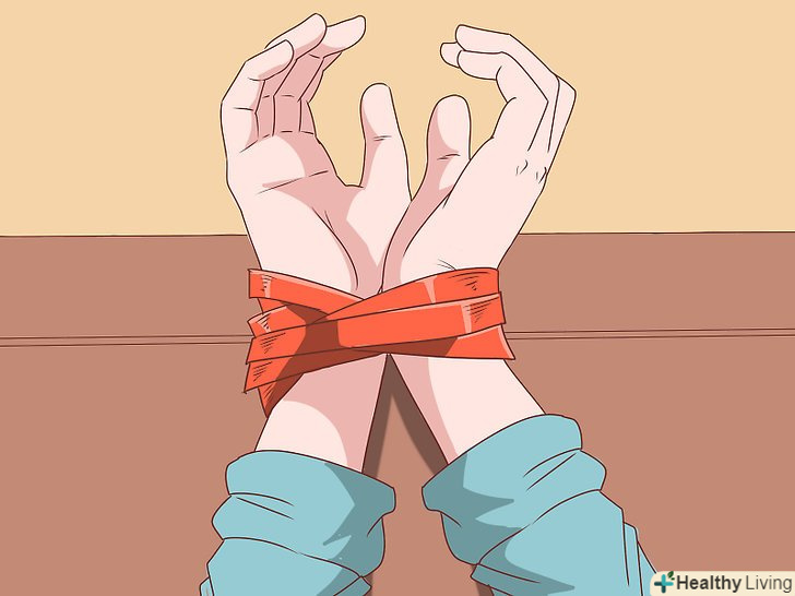 - Найкраще пов'язати жертву в лежачій розпластаній позі з руками над головою і зафіксованими ступнями. Це можна зробити на ліжку. Якщо ваш партнер згоден, попросіть його або її лягти на ліжко і, взявши мотузку, прив'яжіть кожну руку окремо до узголів'я. Замість мотузки можна використовувати наручники.