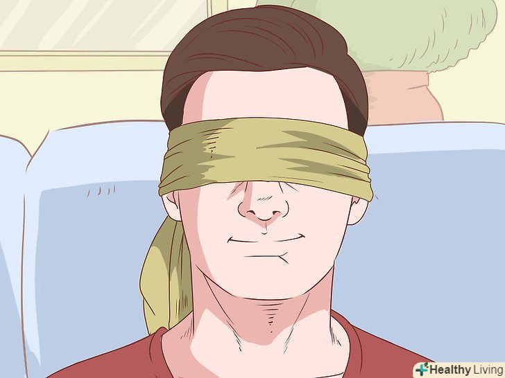 Зав'яжіть своїй жертві очі.Пов'язка на очі часто використовується в еротичних іграх.[5] оскільки жертва не буде бачити ваших маніпуляцій, пов'язка посилить дію лоскоту за рахунок ефекту несподіванки. Ваша жертва не знатиме, де ви полоскочете її в наступну мить, що додасть грі ще більше пікантності.- Якщо ваш партнер не проти, використовуйте маску для сну. Можна також зав'язати очі бинтом або смужкою тканини.