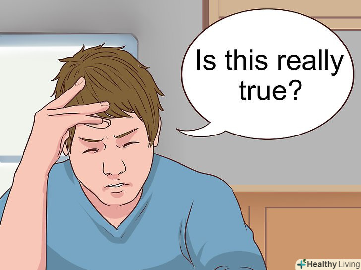 Боріться з негативними шаблонами мислення.тепер, коли ви знаєте, що таке когнітивні спотворення і як їх розпізнати, навчитеся боротися з логікою таких думок. Так ви отримаєте владу над своїми думками і навчитеся безперервно стежити за тим, що відбувається у вас в голові. Помітивши, що починаєте мислити негативно, використовуйте наступні стратегії:[8]- Спочатку подумайте про те, наскільки правдиві такі думки. Наприклад, ви подумали: «ніхто мене не любить». Необхідно оцінити, наскільки це правда.