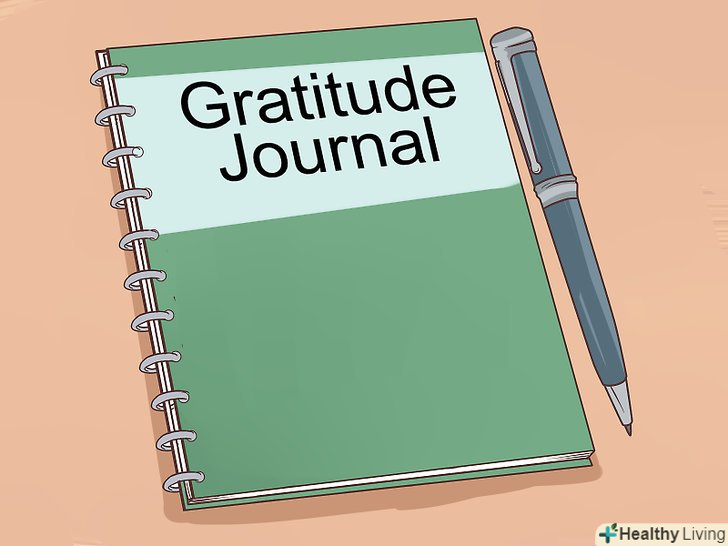 Навчіться подяки.Думайте про ті речі, за які ви відчуваєте вдячність, щоб зберігати оптимізм навіть у непростих обставинах. Постарайтеся зосередитися на будь-яких позитивних аспектах життя і налаштувати свої думки на позитивний лад.[6]- Щоб це увійшло в звичку, почніть вести щоденник подяки. Щовечора перед сном приділяйте кілька хвилин тому, щоб записати кілька речей, за які ви сьогодні вдячні.
