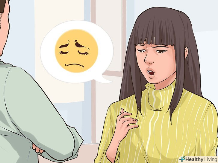 Описуйте свої почуття.не забувайте, що аутистам складно розуміти жести, міміку та інші невербальні підказки. Замість цього спробуйте описувати свої почуття або думки. Шляхом чіткого викладу своїх почуттів або думок замість спроб змусити хлопця здогадатися про них можна запобігти незручні ситуації і навіть сварки.- Наприклад, якщо людина відводить погляд, то зазвичай це говорить про відсутність інтересу або ж розладі. Для аутиста така поведінка може не говорити абсолютно ні про що.[16] краще сказати "я сьогодні сильно перенервувала"або" у мене був важкий день".