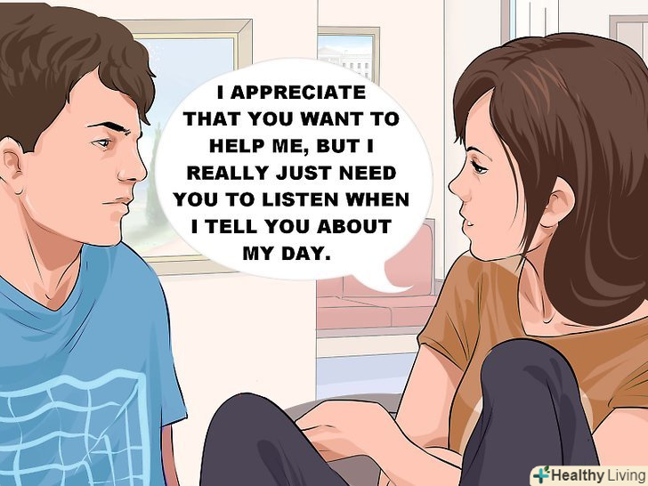 Скажіть хлопцеві, яку реакцію ви чекаєте.іноді аутистам не ясно, як слід реагувати на певні ситуації. Розкажіть, як слід реагувати в конкретних ситуаціях, щоб допомогти йому зрозуміти ваші потреби і очікування.- Наприклад, ви гніваєтеся, коли розповідаєте хлопцеві про справи на роботі, а він постійно дає поради про те, як вам чинити. Скажіть приблизно наступне:"мені приємно, що ти хочеш допомогти, але я хочу, щоб ти просто вислухав і не давав порад".