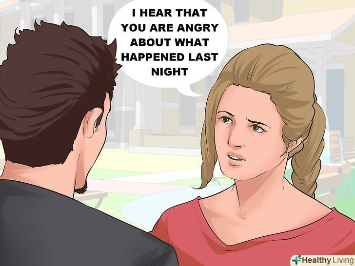Намагайтеся спокійно сприймати розбіжності.обговорюйте свої почуття і думки спокійно і прямо. Такий підхід виявиться ефективніше емоційної реакції, навіть якщо вас переповнює злість або образа. Зайві емоції можуть збити вашого партнера з пантелику і він не зрозуміє, чому ви засмучені.[17]- Намагайтеся не говорити фраз у другій особі на кшталт" Ти ніколи"," ти не","тобі слід".