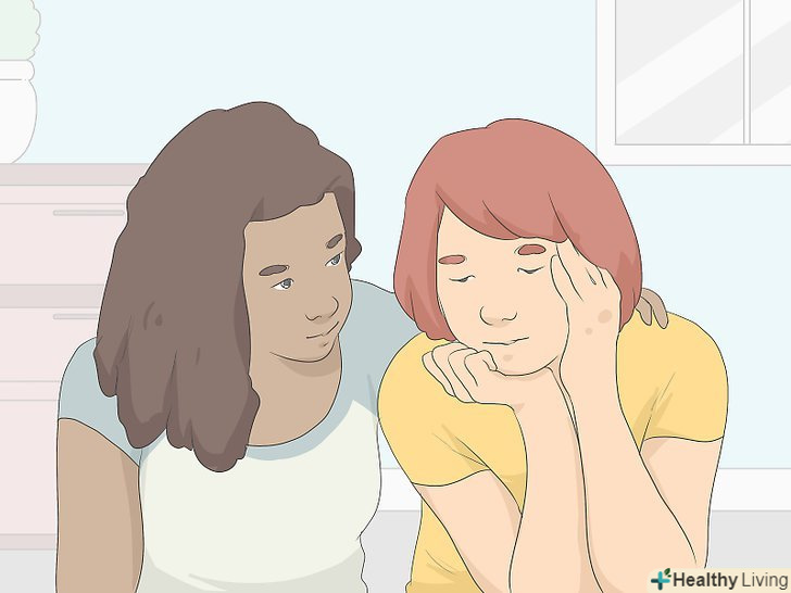 Зверніться за допомогою до друга.якщо ви ніяк не можете вибратися зі стану тривожності, зателефонуйте другу або члену сім'ї і попросіть про допомогу. Нехай ця людина відверне вас від паніки і проаналізує ваш страх, щоб вам було простіше побороти його. Якщо у вас часто бувають панічні атаки, навчіть друга правильним діям під час такого нападу, щоб людина була готова до того, що ви можете попросити про допомогу.[20]- Наприклад, попросіть людину тримати вашу руку під час панічної атаки і нагадувати вам, що вам не загрожує небезпека.