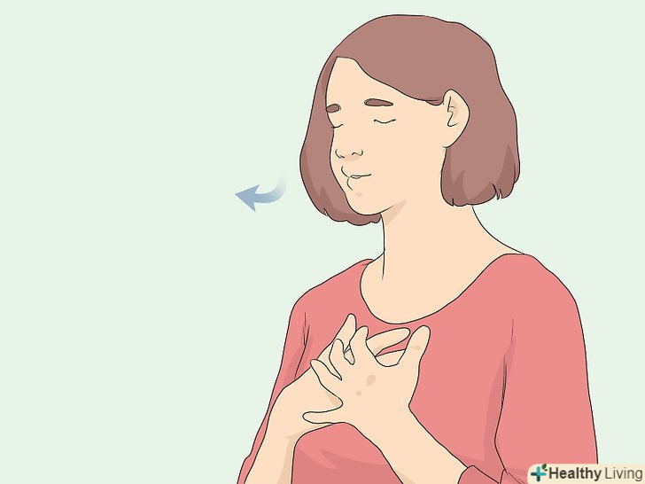 Дихайте глибоко, щоб заспокоїтися. якщо у вас панічна атака, у вас напевно почалася гіпервентиляція. Навіть якщо і ні, важливо глибоко дихати, щоб послабити стрес і поліпшити приплив кисню до мозку. Так у вас з'явиться можливість зосередитися. При наближенні панічної атаки зупиніться і постарайтеся уповільнити дихання. Робіть повільні і регулярні вдихи через ніс і видихайте ротом.[2]- По можливості сядьте рівно або ляжте, поклавши одну руку на живіт, а другу - на груди. Відчуйте, як живіт розширюється під час повільного вдиху. Потім за допомогою м'язів живота виштовхніть повітря назовні.[3]
