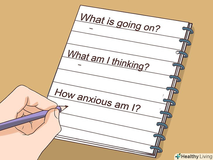 Записуйте свої почуття.розпізнайте свої відчуття і запишіть їх в блокнот, щоб знизити тривожність. У разі занепокоєння просто запишіть свої відчуття. Можна завести щоденник і записувати в нього всі свої тривожні думки. Існують різні способи організації думок в щоденнику. Так, можна розділити сторінку на три колонки.[15]- У першій колонці давайте відповіді на питання: що відбувається? У чому суть ситуації? Також потрібно вказати, де ви знаходитесь, чим займаєтеся, хто знаходиться поруч з вами в конкретний момент і інші деталі.