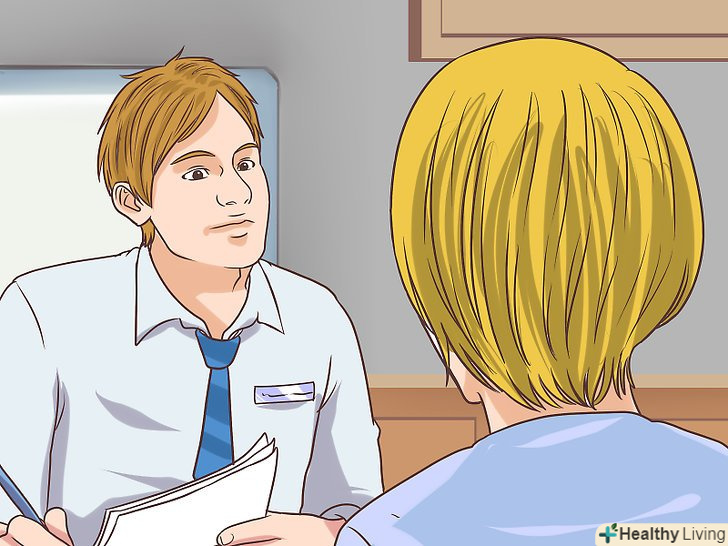 Зверніться до психотерапевта.якщо тривога заважає нормальному повсякденному житті, тоді вам слід звернутися до фахівця на кшталт психолога-консультанта або психотерапевта.[19] Розмовна терапія дозволяє знизити тривожність і навчитися ефективно боротися з ситуаціями, які провокують занепокоєння.- Наприклад, зверніться до фахівця, якщо ви віддалилися від друзів і родичів, уникаєте деяких місць зі страху або не можете зосередитися на важливих справах через тривогу.