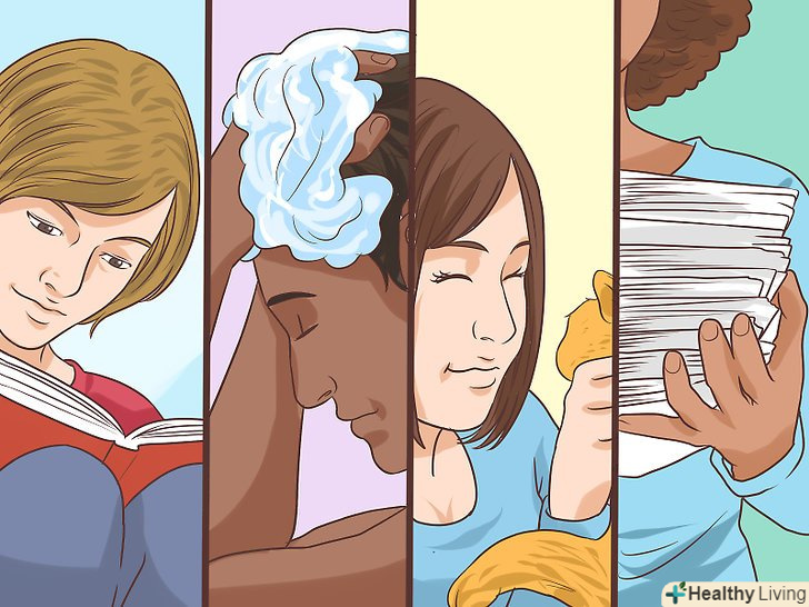 Відволікайтеся.відпочиньте на інше заняття, щоб послабити тривогу. Примусьте себе зайнятися іншою справою, яка займе вашу увагу в разі занепокоєння. Через 10-15 хвилин тривога почне відступати.[9]- Наприклад, почніть читати книгу, прийміть розслаблюючу ванну з піною, пограйте з котом або наведіть порядок на столі.