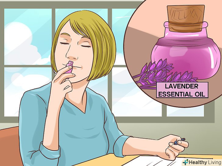 Використовуйте заспокійливо ефірні масла.Давно відомо, що лаванда допомагає знизити занепокоєння в разі стресу (наприклад, перед іспитом).[10] носіть з собою лавандовий лосьйон або пухирець з ефірною олією, щоб при необхідності вдихнути аромат лаванди.- Також підійде ефірна олія з іншими ароматами: римська ромашка, мускатний шавлія, лимон і бергамот.[11]
