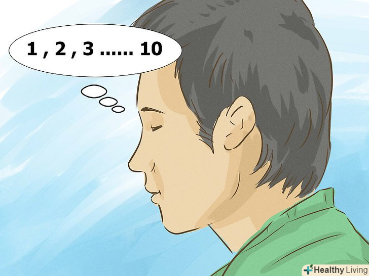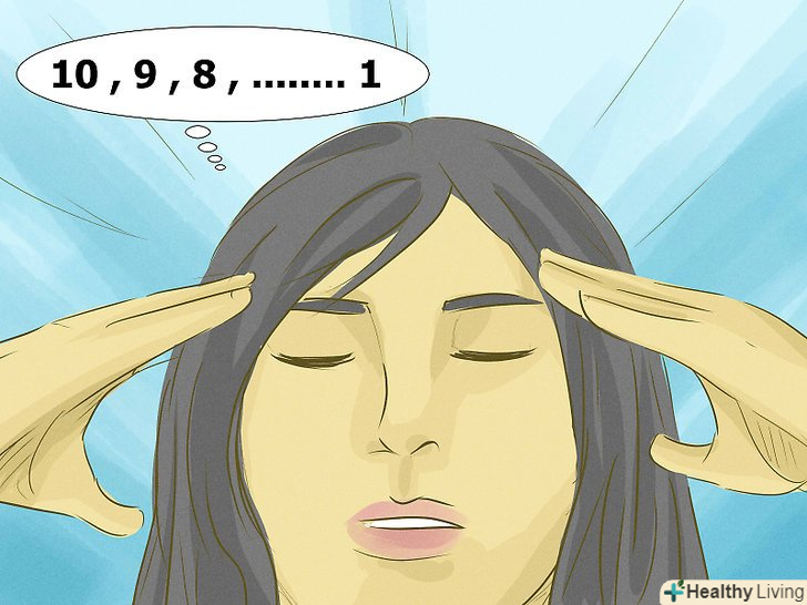 Пориньте в транс.щоб увійти в стан трансу, уявіть собі дуже довгу сходи, яка веде в особливе місце. Заплющити очі. Порахуйте в зворотному порядку від 10 до 1. При цьому послідовно розслабляйте різні частини свого тіла. Робіть глибокі очищаючі вдихи і в міру спуску по уявній сходах відчувайте, як з кожною сходинкою напруга залишає ваше тіло. При видиху розслабляйте чергову частину тіла.[7]- 10...Розслабте щелепи і м'язи обличчя. Опустіть язик на нижнє небо.