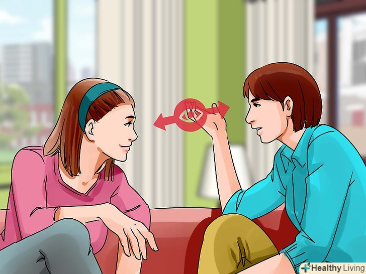 Підтримуйте зоровий контакт зі співрозмовником.коли ви з кимось говорите або слухаєте когось, зніміть темні окуляри і дивіться людям в очі. Намагайтеся час від часу відводити погляд від людини, інакше ви ризикуєте справити враження не впевненості, а агресії.[3]