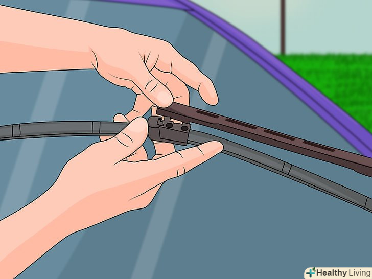 РегулярноМіняйте самі двірники . Відтягніть металевий важіль склоочисника від вітрового скла. У точці з'єднання двірника з важелем ви побачите кріплення. Тут можна знайти фіксатор двірника. відкрийте фіксатор, зніміть старий двірник, надіньте новий і знову закріпіть фіксатор.[13]- На деяких машинах двірники на важелях фіксуються нажимной засувкою або гаком. Вручну вивільніть двірники з наявних фіксаторів і зніміть з важелів.