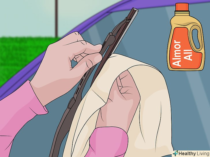 Спробуйте розм'якшити гумові леза двірників.загрубілі Щітки двірників можуть видавати деренчливі звуки і скрипи. У ряді випадків двірники бувають грубими з самого початку (з моменту покупки), інші ж грубіють під впливом навколишнього середовища. Якщо двірникам вже більше року, їх слід просто замінити, але більш нові двірники можна спробувати пом'якшити одним з нижчезазначених засобів.- Засіб ArmorAll. Нанесіть щедру кількість засобу на паперовий рушник. Круговими рухами втирайте ArmorAll в гумові Щітки двірників, щоб пом'якшити їх.[8]