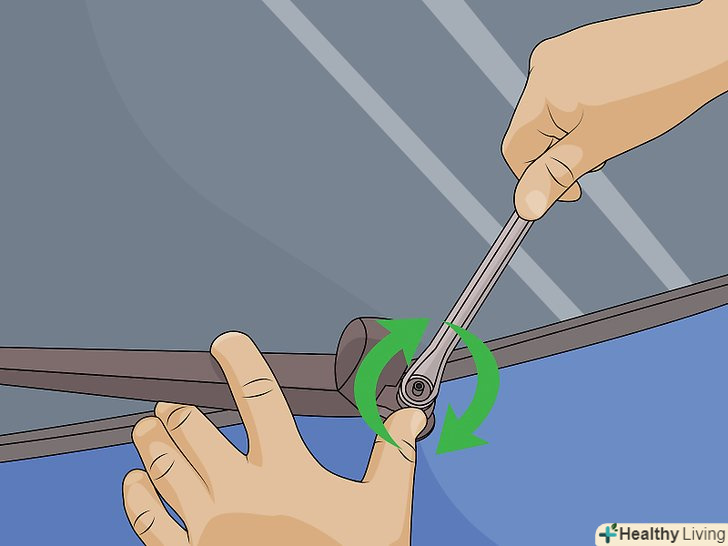 Відрегулюйте гайки фіксації важелів склоочисника. перевірте, чи не занадто слабо або щільно притиснуті до скла двірники і важелі склоомивача. Занадто велике або недостатнє тертя між склом і двірниками може призводити до деренчання і скрипів.- Зазвичай важелі можна налаштувати гайковим ключем, затягнувши гайки в їх підставі за годинниковою стрілкою або послабивши їх у зворотному напрямку.[10]