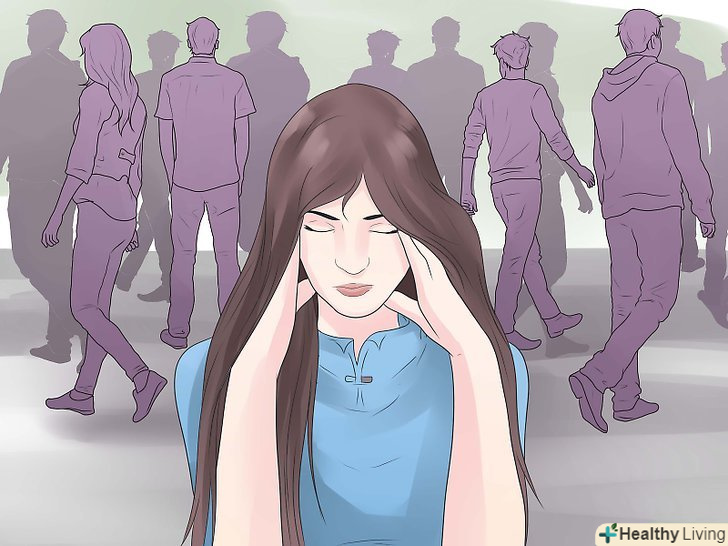 Знайдіть способи заспокоюватися на людях.іноді це означає Просто піти від ситуації, в якій вам некомфортно. Глибоко вдихніть і нагадайте собі, що у всіх людей навколо є свої особисті страхи. [5]