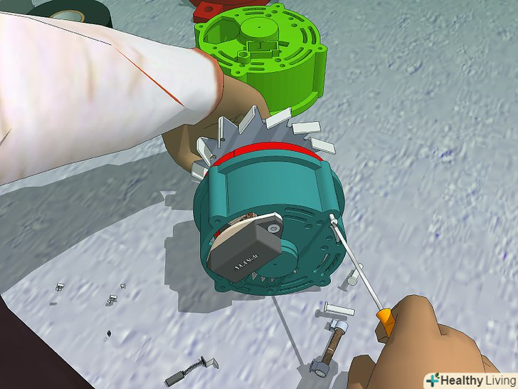 Зніміть з задньої частини генератора пластиковий кожух, попередньо викрутивши гвинти його кріплення.