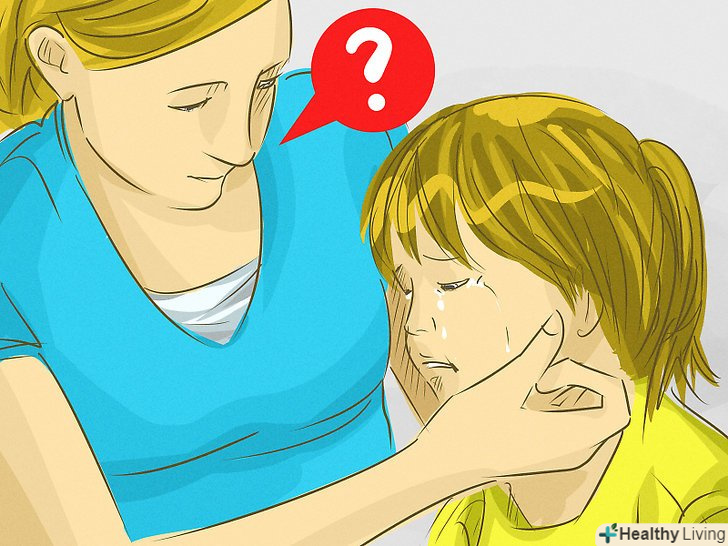 2. Задайте дитині уточнюючі питання. на відміну від гри в "угадайку" з немовлятами, підросли діти мають більш розвиненими навичками спілкування, тому їм можна задати пряме запитання: "Що сталося?"Це не обов'язково означатиме, що дитина опиниться в змозі описати проблему як дорослий, але важливо вміти задати йому прості питання і постаратися прочитати відповідь на них між рядків, якщо малюк не може описати проблему в деталях.