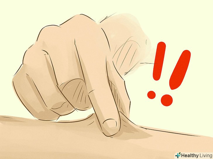 9. Використовуйте больові відчуття в якості відволікаючого фактора.фізичний біль відволікає ваші почуття від першоджерела емоційного болю, що знижує ймовірність появи сліз. Ви можете вщипнути себе (наприклад, між великим і вказівним пальцями руки або з внутрішньої сторони передпліччя), прикусити мову або смикнути себе за волоски на нозі через кишеню брюк.[10]