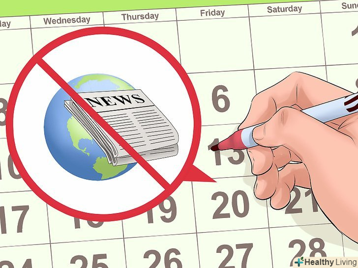Спробуйте різко відмовитися від новин.цей прийом підходить багатьом людям. Утримуватися від перегляду новин може бути складно, оскільки новини присутні скрізь: в Інтернеті, на телебаченні, на радіо. Намагайтеся відволікати себе від джерел новин і приділяти більше уваги своїй роботі або іншому заняттю.- У людини може розвинутися залежність від самих різних речей. Різка відмова від перегляду новин-це один із способів боротьби із залежністю, проте він не завжди призводить до успіху. Наприклад, в ході досліджень було встановлено, що 22% відсотка людей, які кидають курити одномоментно, позбавляються від звички назавжди. Куріння відрізняється від перегляду новин, але тенденції можуть бути схожими.[8]