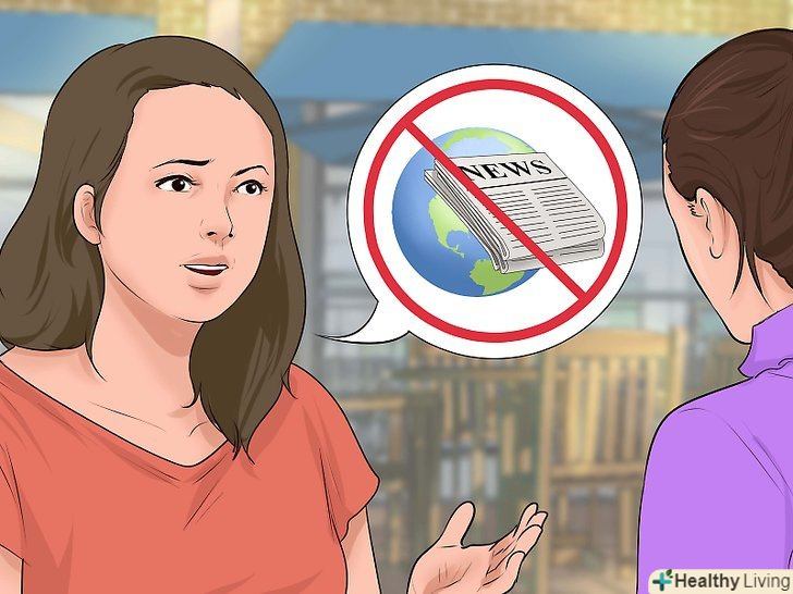 Будьте прикладом для інших.якщо ви познайомилися з людиною, яка, як вам здається, залежний від новин, Не говоріть з ним про новини. Заводьте розмови на інші, більш позитивні теми. Якщо вам стане складно або неприємно продовжувати розмову, вибачитеся і підіть.- Діліться своїм досвідом подолання залежності, але не тисніть на людину і не намагайтеся контролювати його. Запропонуйте людині спробувати методи, які допомогли вам подолати залежність.