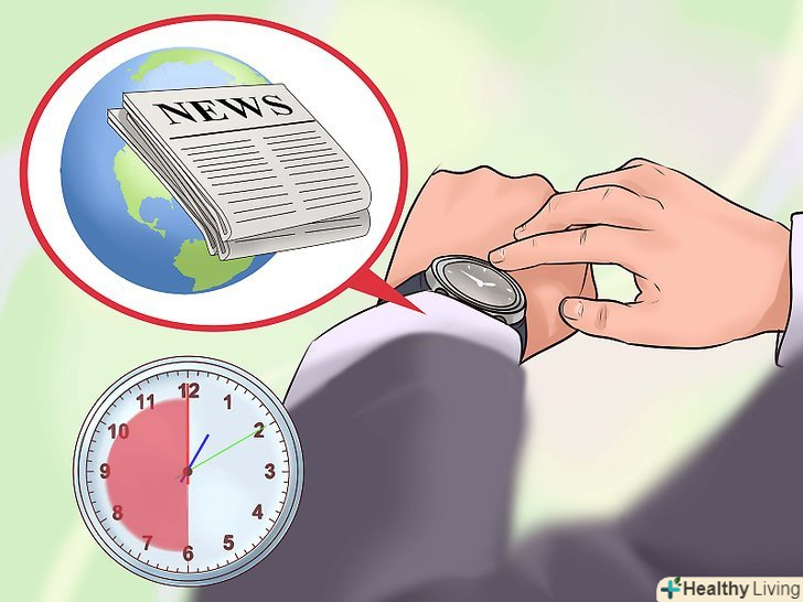 Виділяйте певну кількість часу на перегляд новин. [3] встановіть максимальну кількість часу, який ви можете присвятити новинам, щоб це не заважало вам займатися іншими справами. Тридцяти хвилин в день має бути достатньо. Найчастіше через півгодини новинні сюжети починають повторюватися.- Врахуйте всі джерела новин. Розплануйте час на читання, перегляд і прослуховування новин. Якщо ви встановите обмеження і будете відстежувати в календарі або планувальнику, скільки часу ви витрачаєте, вам буде простіше йти до мети.