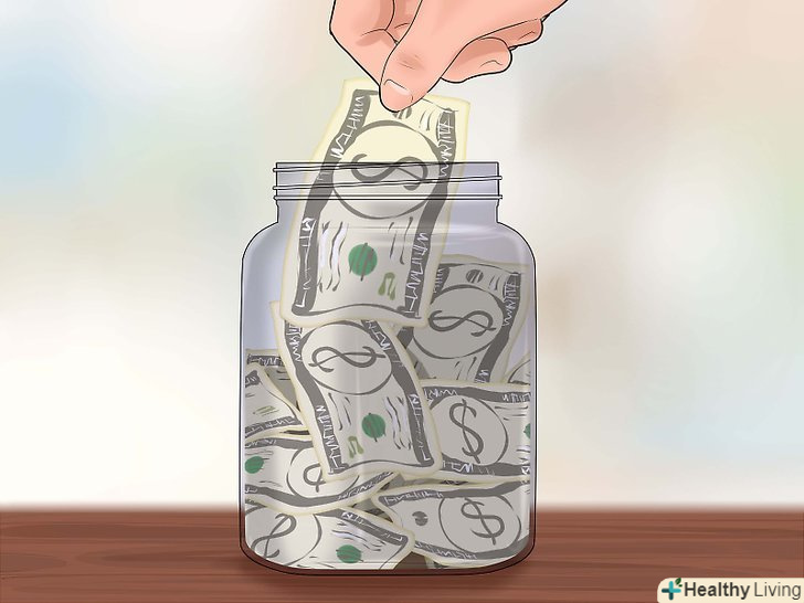 Передбачте грошову відповідальність за відступ від своїх правил.якщо ви витратили на новини більше часу, ніж збиралися, кладіть за це гроші в банку. Ці гроші можна віддавати другу або родичу або передавати в некомерційну організацію, яка допомагає людям із залежностями.- Часто люди домовляються платити штрафи таким же чином, якщо намагаються відучитися висловлюватися нецензурно.[4] у Вашому ж випадку замість небажаних слів вам потрібно буде стежити за тим, скільки часу ви витрачаєте на новини. Вирішіть, скільки грошей ви будете класти в банку за кожне порушення. Можна також попросити кого-небудь класти гроші в банку, якщо вам вдасться прожити цілий день без новин. Всі гроші можна витратити на добру справу.