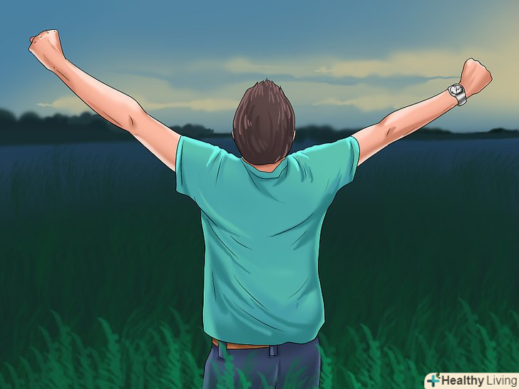 Займіться самоусвідомленням. самоусвідомлення дозволяє зосередитися на сьогоденні і підпорядкувати собі свої думки. Уміння зосереджуватися на тих думках, які вам подобаються, допоможе вам перестати думати про минуле. Займайтеся практикою самоусвідомлення, якщо зрозумієте, що думаєте про минуле. [14]- Один з найпростіших прийомів самоусвідомлення — це концентрація на диханні. Зверніть увагу на всі фізичні відчуття при диханні. Що ви відчуваєте, коли повітря надходить в легені і виходить через ніс? Відчуйте, як піднімається і опускається грудна клітка.