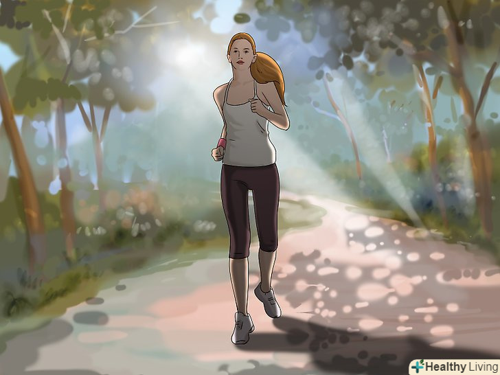 Почніть займатися спортом. Спорт сприяє виробленню ендорфінів (гормонів щастя) і стимулює нервову систему. Намагайтеся займатися не менше 30 хвилин кожен день. Фізичні навантаження, які задіють руки і ноги (ходьба, біг, плавання, танці), підходять найкраще. [20]- Зосередьтеся на своєму тілі та його рухах.